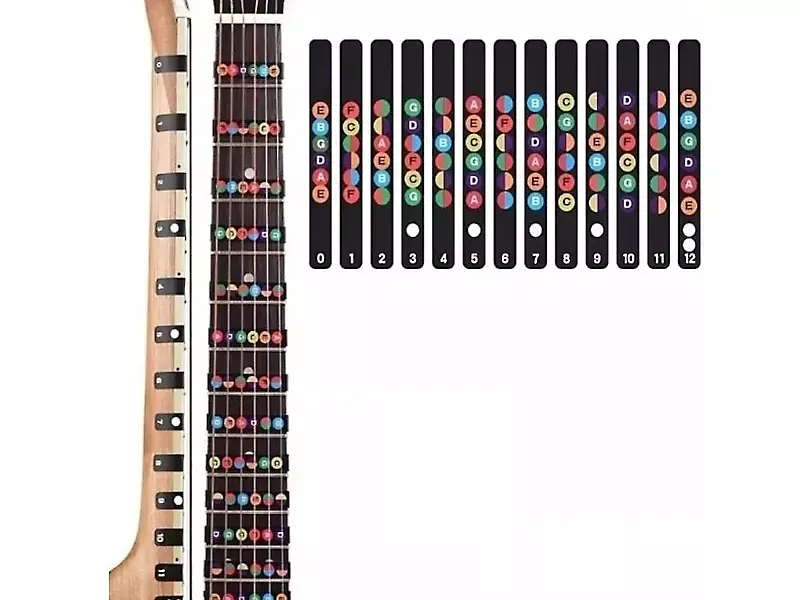 Etiqueta adesivo notas musicais para guitarras e outros instrumentos de com 6 cordas,Irá auxiliar você iniciante em seus estudos tendo assim melhores resultados em sua aprendizagem.
