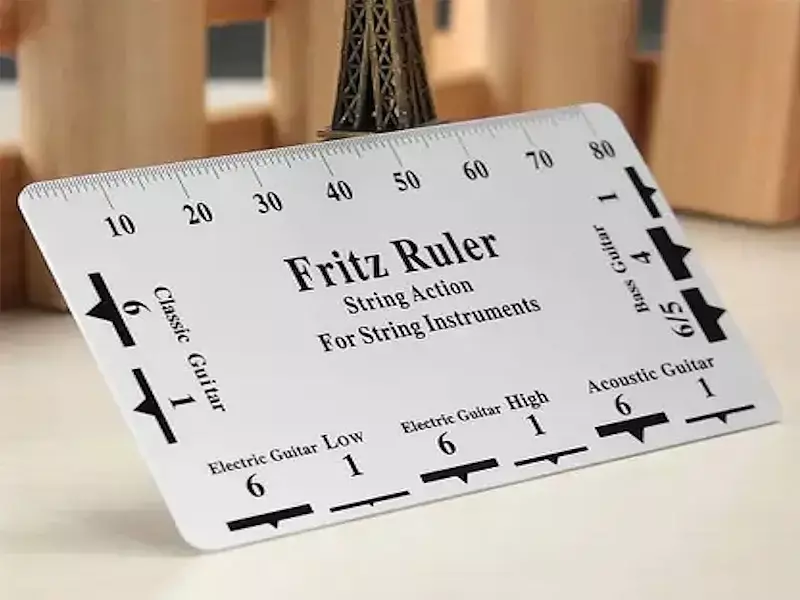 A Régua de Ação de Cordas da Fritz Ruler é fabricada em material de PVC de excelente qualidade.Uma régua com diversas funções, que se aplica há qualquer instrumento de corda e que cabe no seu bolso!
